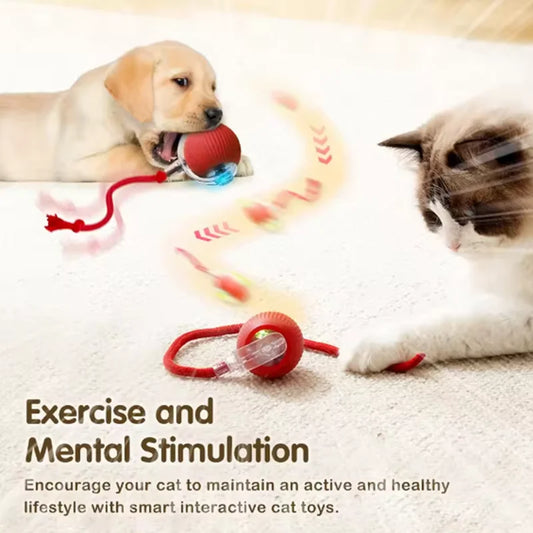 Cat Interactive Ball Toy, Automatic Rolling Ball with Tail, Rechargeable Smart Pet Interactive Toy, Intelligent Toy for Cat